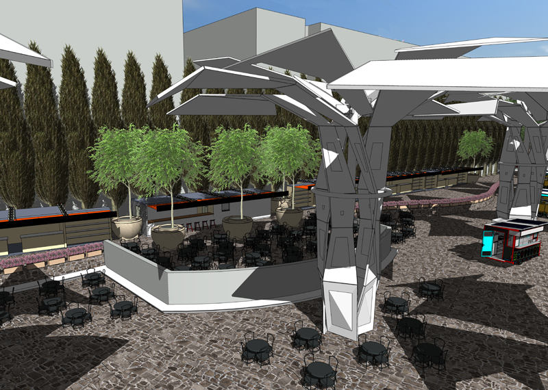 Solution: Created a vital piece of joinery which solves a variety of problems and adds much more. While creating a new street level pedestrian surface which acts as a stage for constant events of activity, it is indeed Parisian. In staying relevant to its history, it also pays homage to an important transportation landmark, the EuroTrain Railway.